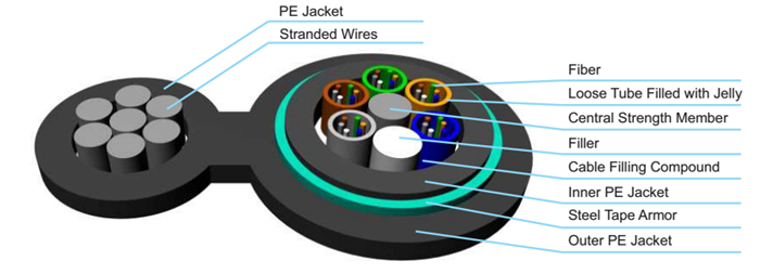 Aerial Fig8 Armored Loose Tube Double Jacket/ Single Armor Cable